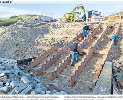De werkzaamheden aan de trappen van Petten zijn in volle gang. De…