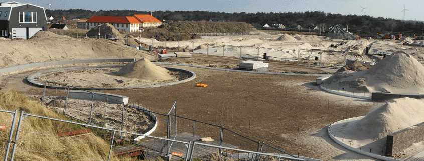 De uitvoering van het ontmoetingsplein in Petten vordert snel. De nieuwe duin wordt aangebracht en de band rond de ronde speelplek staat. Aan de Spreeuwendijk wordt de trap met de hellingbaan aangebracht.
