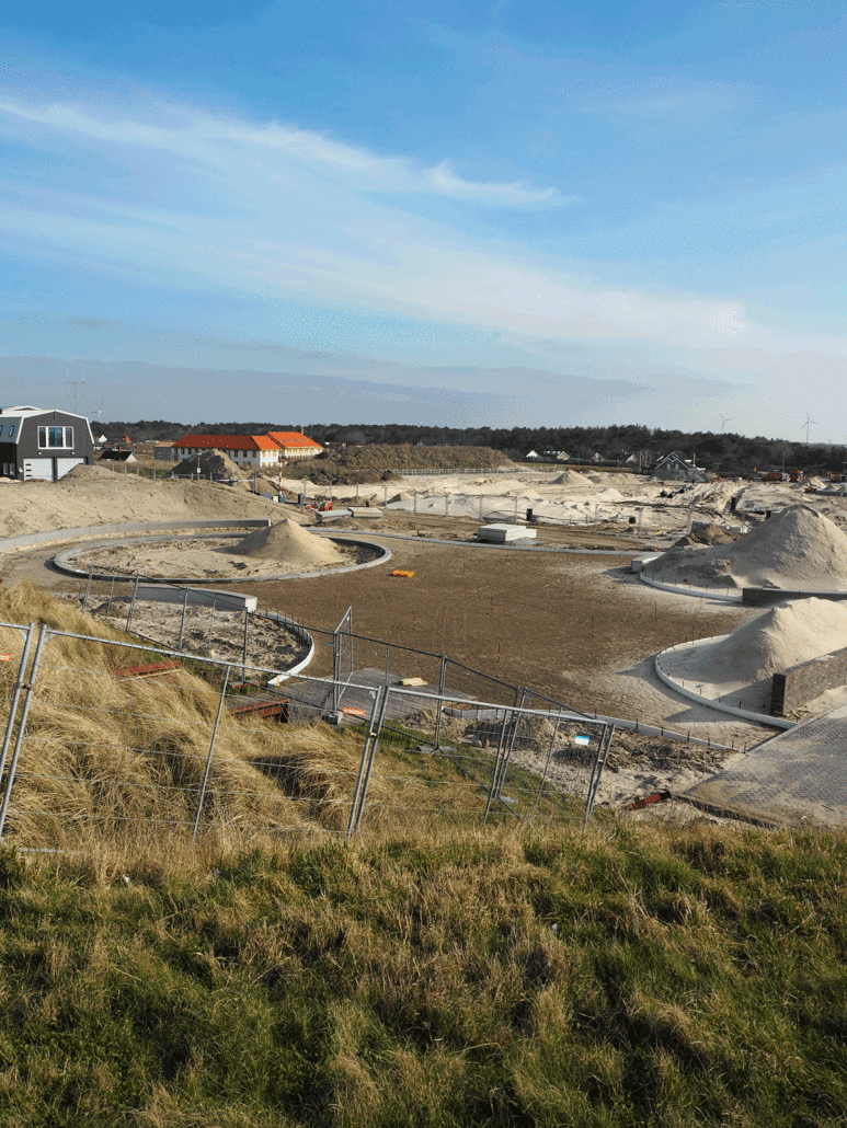 De uitvoering van het ontmoetingsplein in Petten vordert snel. De nieuwe duin wordt aangebracht en de band rond de ronde speelplek staat. Aan de Spreeuwendijk wordt de trap met de hellingbaan aangebracht.
