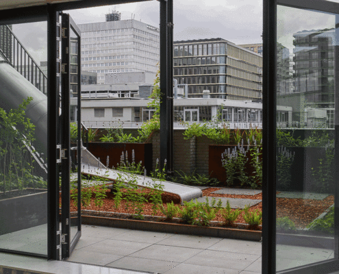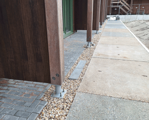 De drie door ons ontworpen binnentuinen voor de Flexwoningen…