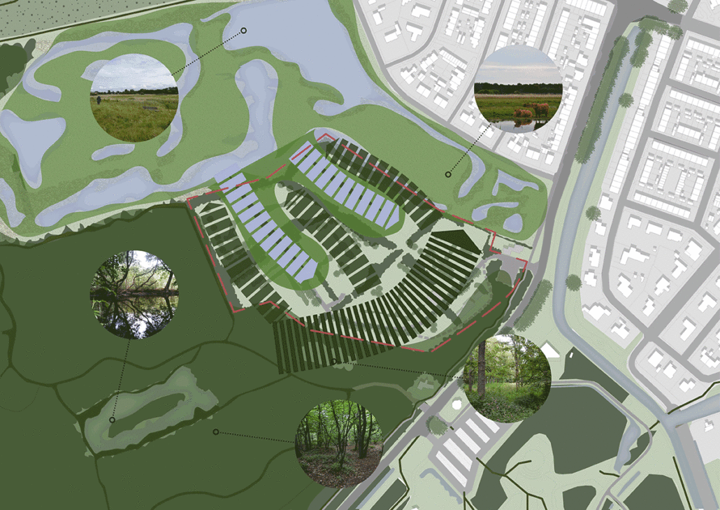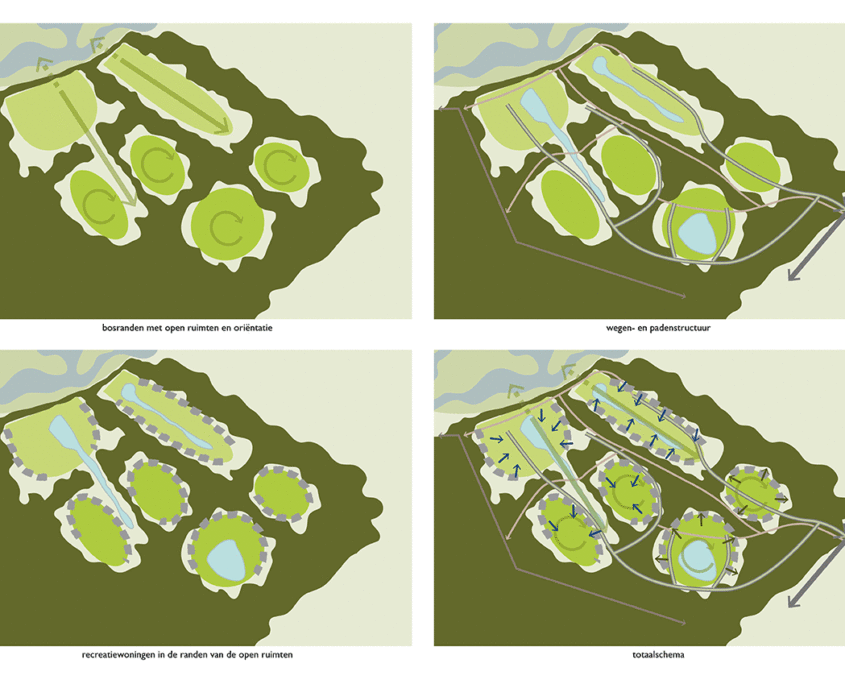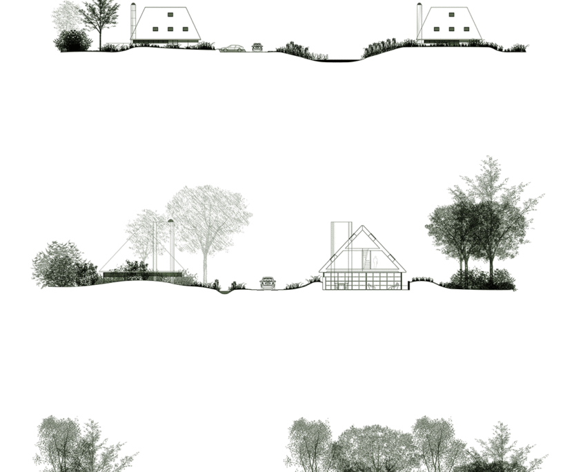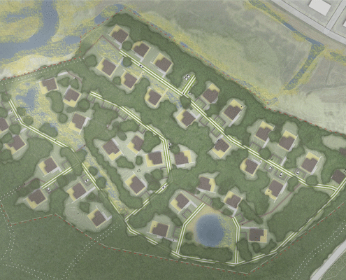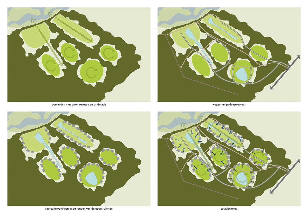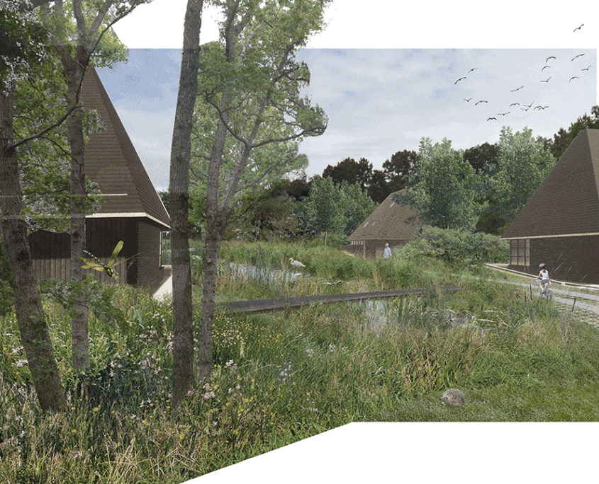 Het terrein blijft bereikbaar via een karrenspoor. De vakantievilla’s worden zorgvuldig in het glooiende landschap ingepast. Elke villa beschikt over een terras, deels omsloten door tuunwallen: kleine dijkjes van zoden of plaggen. Ook de parkeerhavens worden landschappelijk ingepast. Daarnaast komen er diverse natuurlijke speelplekken en een landschappelijke zwemvijver met filtersysteem.