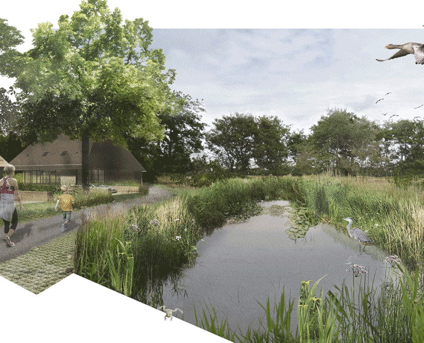 Alle hekwerken rondom het terrein verdwijnen, waardoor het gebied vrij toegankelijk wordt voor fauna. Aan de west- en zuidzijde komt een lange takkenril die subtiel richting geeft aan bezoekers en hen uitnodigt het gebied via de bestaande en nieuwe voetpaden te betreden.