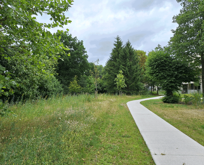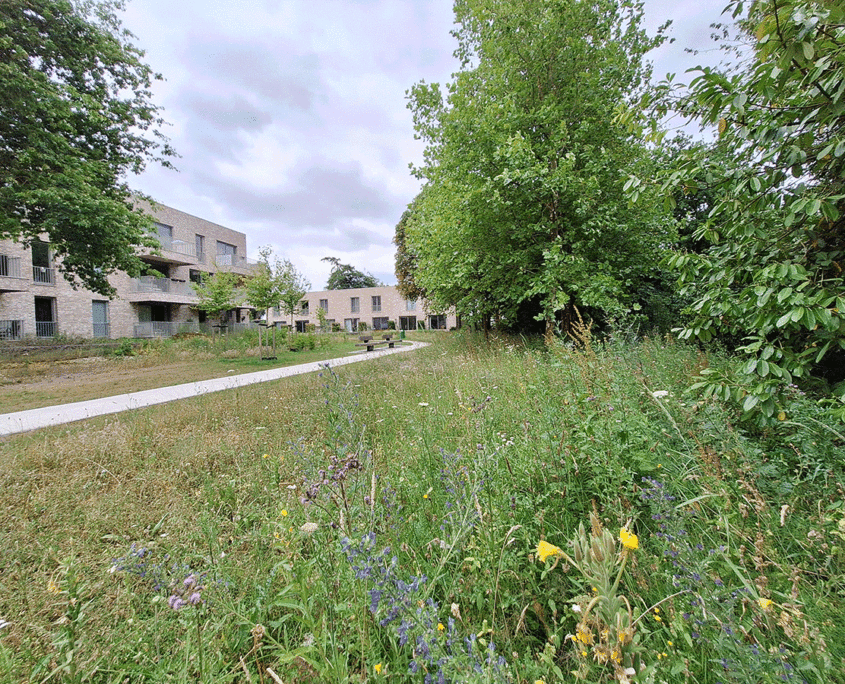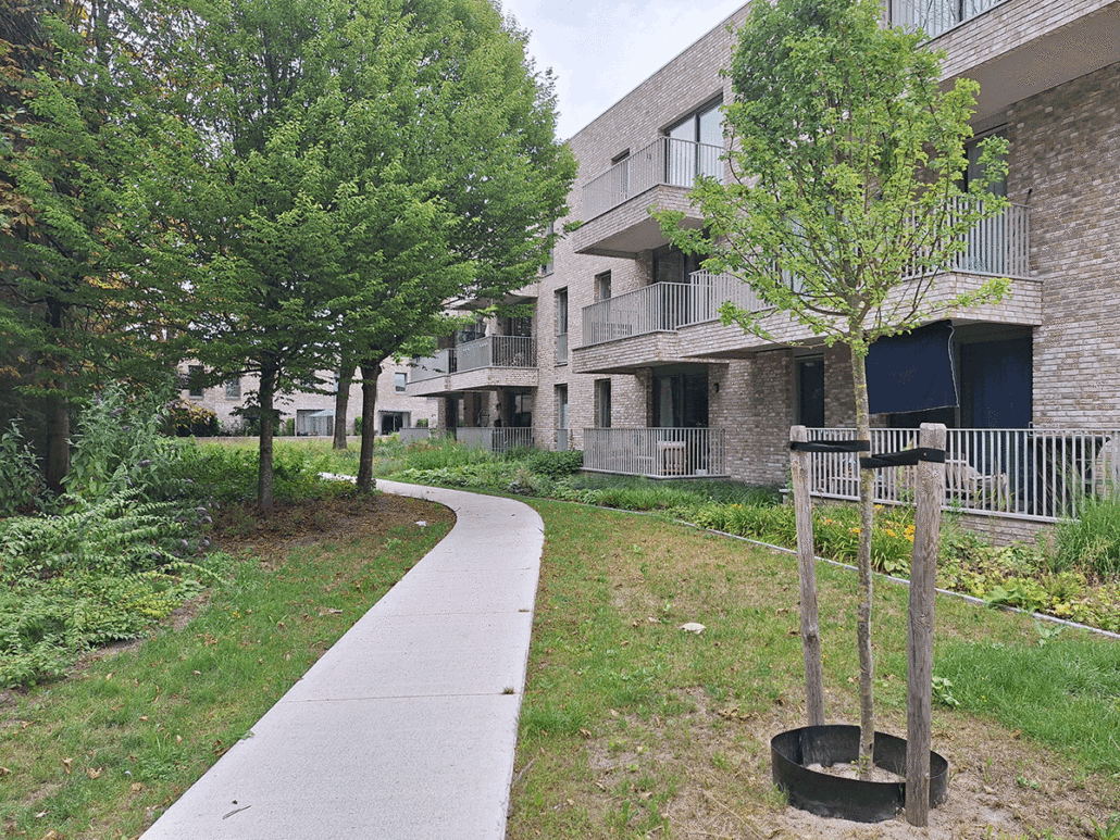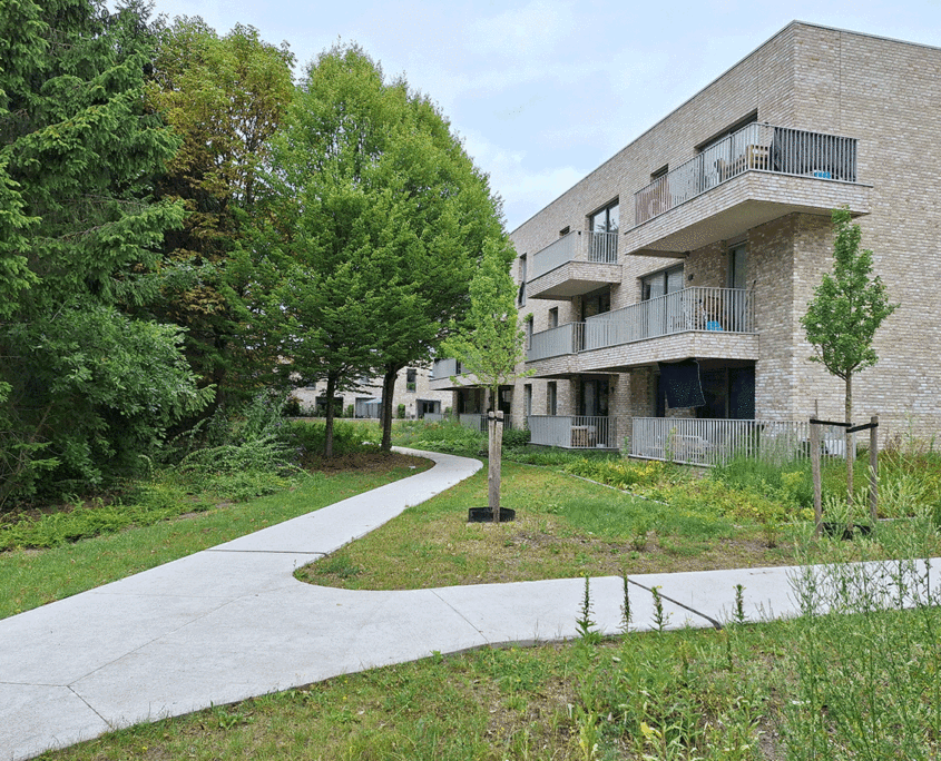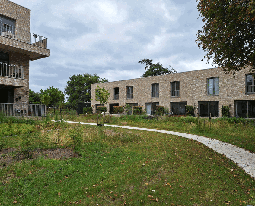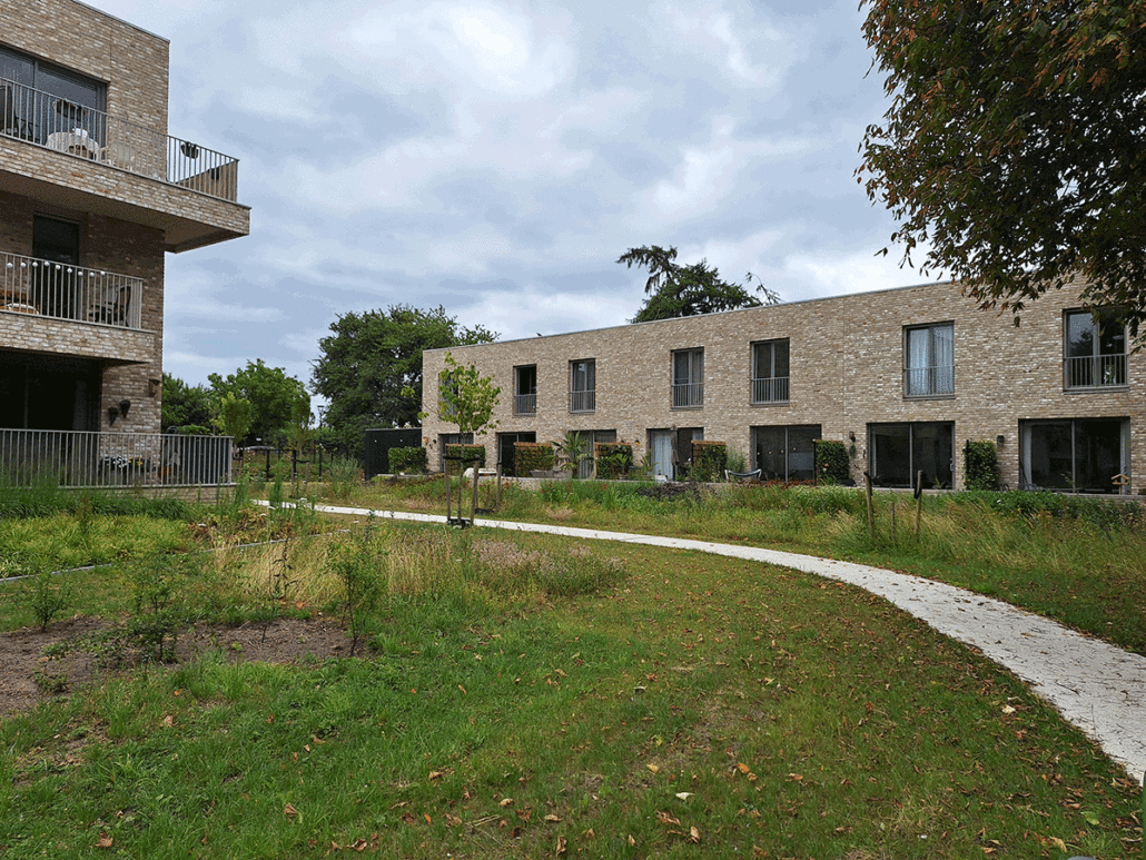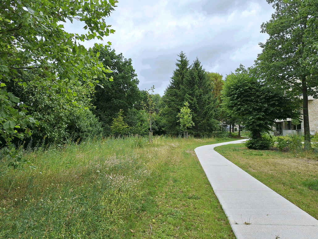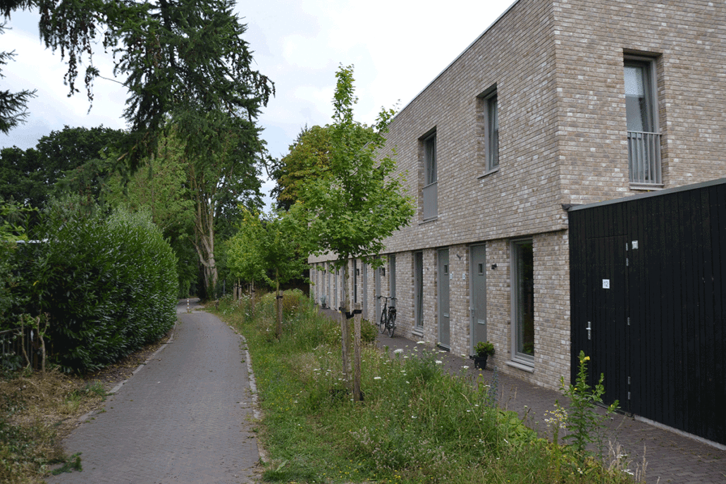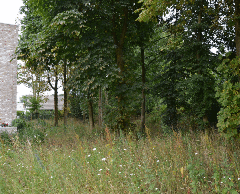 De stedenbouwkundige ingreep zorgt voor een duidelijke zonering op het terrein. Er ontstaan goede doorzichten richting de groene randen van het. Langs de tuinen van de bestaande woningen aan de Nieuweweg komt een groenzone met bestaande bomen en heester. Tevens worden de hier gelegen greppels hersteld. Het terrein wordt voorzien van bloemrijk gras met nieuwe en bestaande bomen. Om de nieuwe complexen heen komen grote plantvakken van vaste planten en kleine heesters. Over het terrein komt een voetpad welke de verschillende onderdelen met elkaar verbinden.