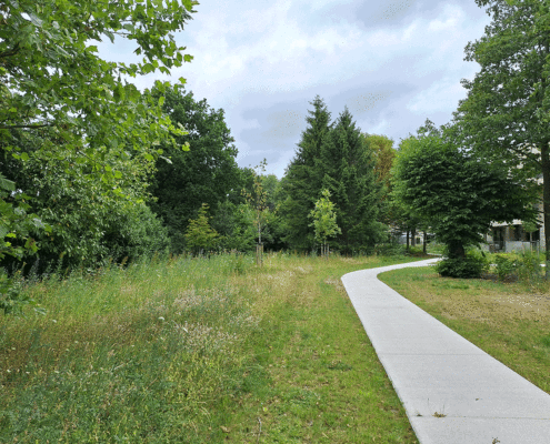 De toe te passen beplanting op het terrein zal bijdragen aan het vergroten van de biodiversiteit. Inheemse bomen, struiken en kruiden zullen hiervoor de basis leggen. De borders met vaste planten zorgen voor extra kleur op het terrein. Ook de toe te passen schanskorven zullen naast het oplossen van het hoogteverschil een belangrijke bijdrage leveren aan de biodiversiteit. Zij zorgen voor schuilplekken voor allerlei organismen.
