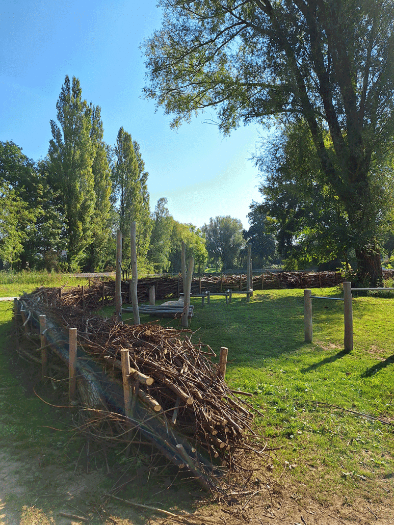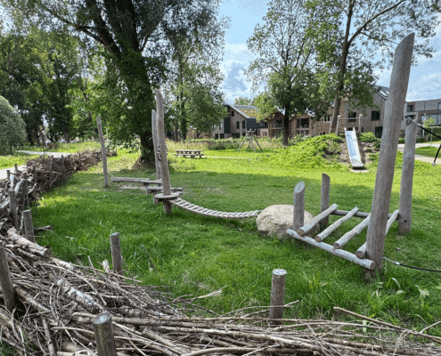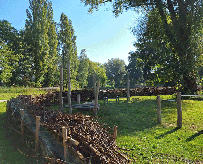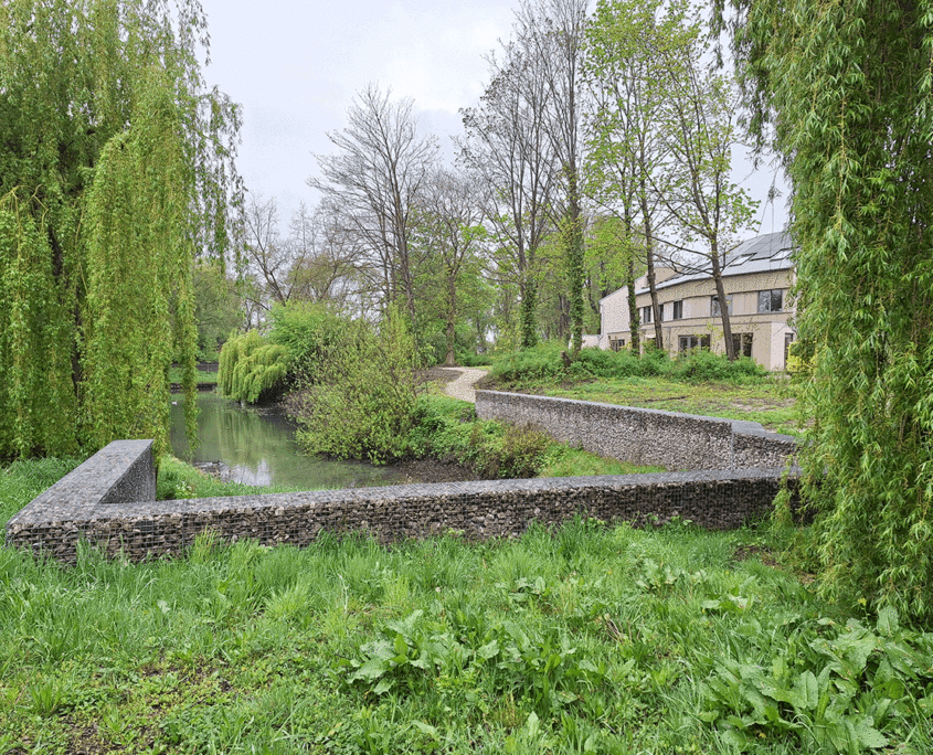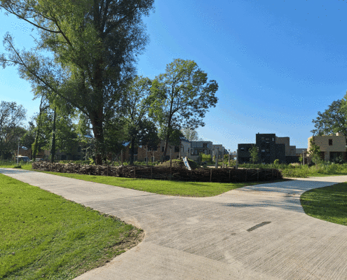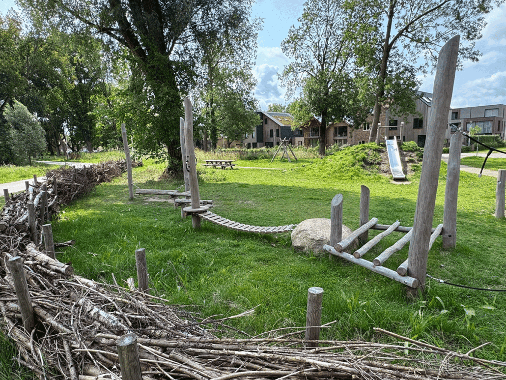 In het ontwerp park zijn een groot aantal ecologische en natuur-inclusieve ingrepen gedaan. Het regenwater van de woonwijken wordt via greppels en vooroevers in de twee waterpartijen opgevangen. Ook worden er allerlei nestkasten en winterverblijven voor zangvogels, vleermuizen, egels en andere zoogdieren opgenomen. Op een aantal strategische locaties vormen schanskorven de overgang naar het park. In deze schanskorven zijn ook kasten en verblijven opgenomen.