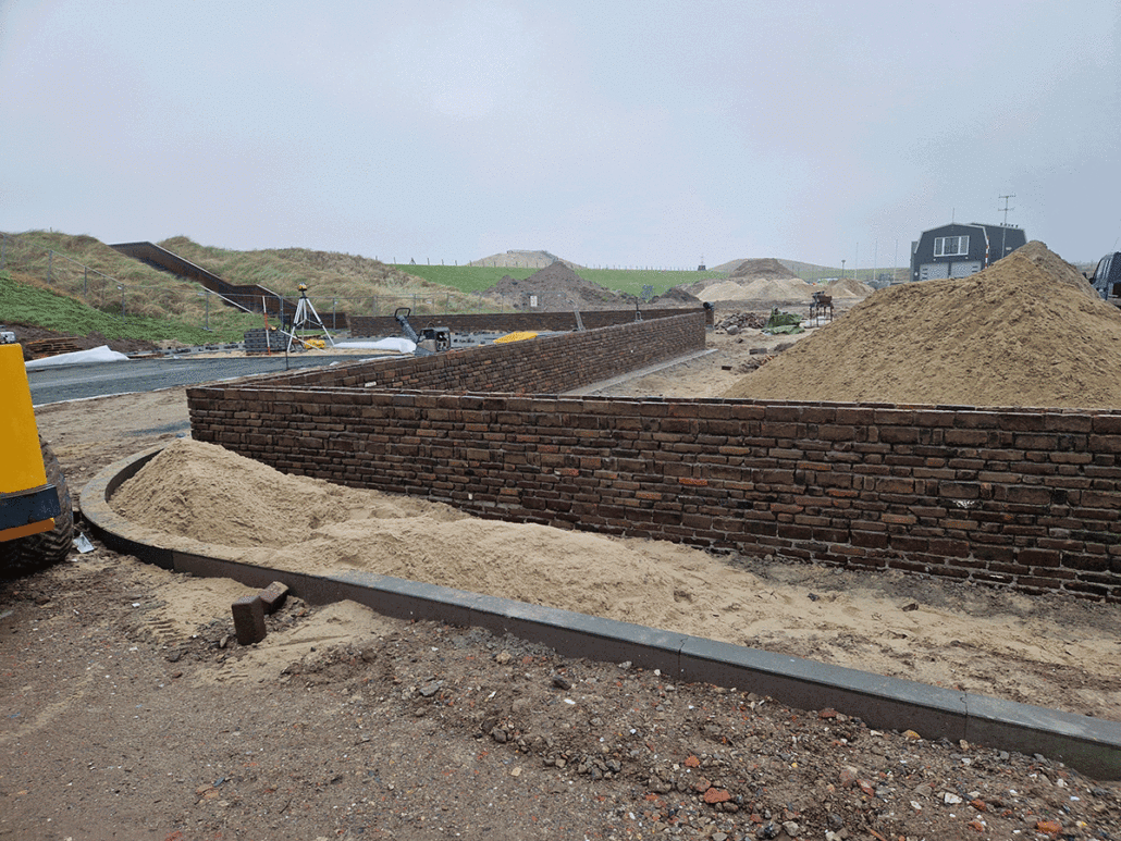 De afgelopen weken is er gestart met de aanleg van het Ontmoetingsplein in Petten. Na de aanleg van de strandtrappen in 2016 is het nu tijd voor het door ons ontworpen plein en parkeerterrein. Er is gestart met de rijbanen voor het parkeerdeel en de muren van de hergebruikte straatklinkers. Dat ziet er spannend uit!